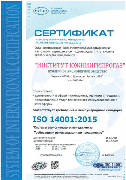- Система экологического менеджмента – требованиям международного стандарта ISO 14001:2017 (сертификат SIC.MS.008. ISO 14001.057 от 16.12.2016)